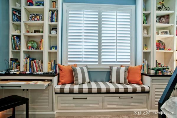 2.如果在小户型的房子里装饰凸窗,储物是首先要考虑的问题。凸窗的平台可以做成所有空心的,有很大的储物空间,可以装饰成很多抽屉,整个凸窗也可以装饰成架子。