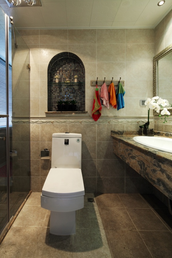 2.小浴室的墙面装饰不一定很具体。进口豪华瓷砖价格昂贵,在小空间内不易获得强烈的审美效果。因此,最好使用几十元和一平方米的家用瓷砖。