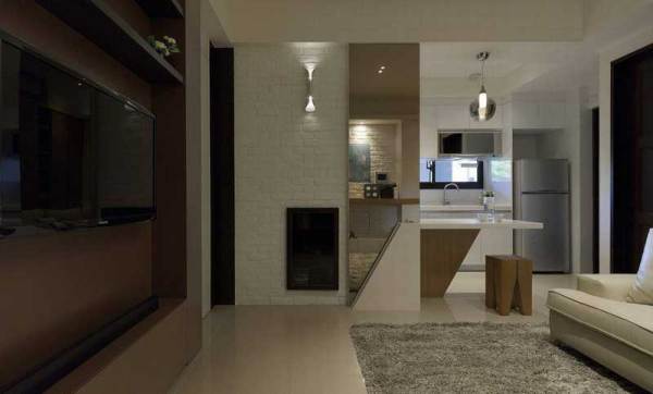 客厅是我们和客人休息的场所,因此这里的客厅选择是很重要的,选择黄色的灯,这样给人一种温馨的感觉,另外还有就是客厅背景墙的装修,选择橙色的主题墙,这样整个居室才会有对比性。