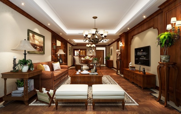 中式以深色为主。室内布局对称,风格优雅,造型简单美观,色彩浓郁成熟。追求修身养性的生活境界。中国传统室内装饰艺术的特点是整体布局对称平衡,端正稳定。