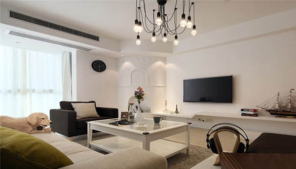嫌弃小房子不好装修,沙发桌子大一些吧还没地方摆